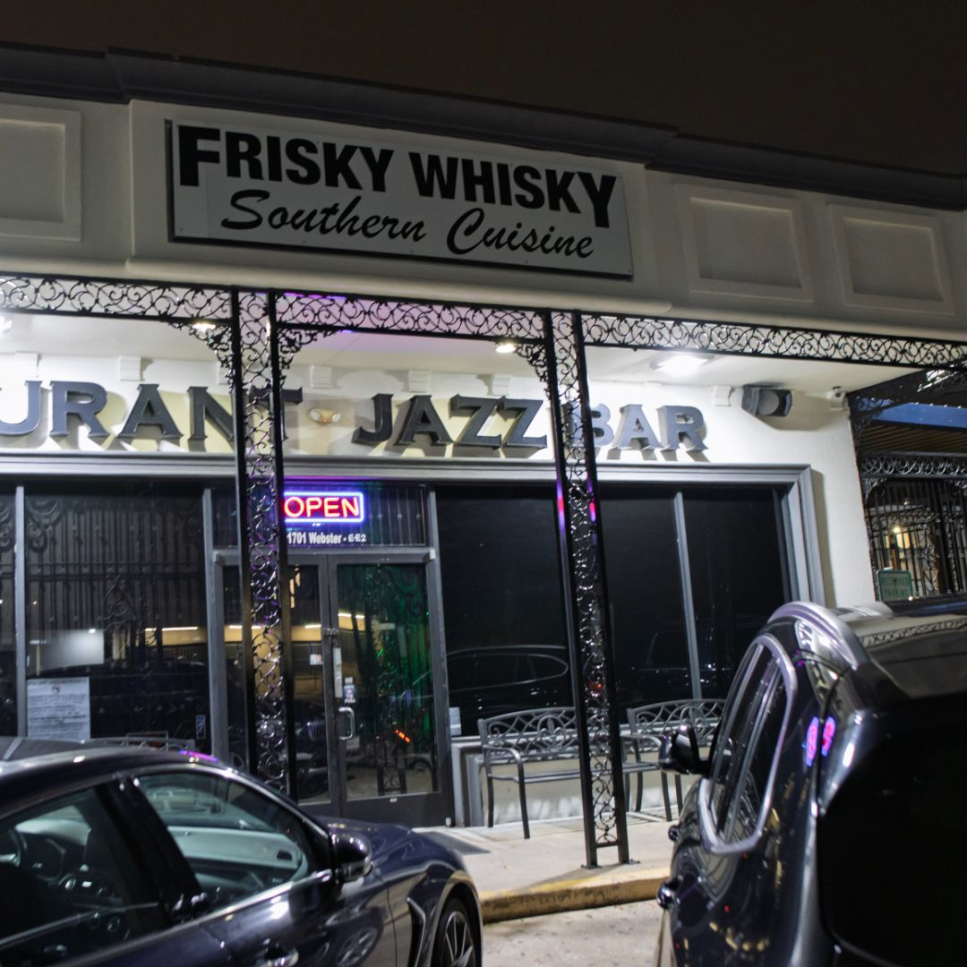 Fred Harris2025-01-16 It is always nice when l have an opportunity to visit this venue. Try the shrimp and grits. You will be impressed. They have a great menu. The management team and staff are very welcoming. Jennifer Abney2025-01-11 What a vibe!! From the welcoming greeting that you get at the door to the atmosphere that makes you enjoy being there makes it the place to be. The bartenders are on point with every selection I had and the waitresses are very attentive. Let’s not forget the savory food. I’m a Louisiana girl so it has to be good. It does not disappoint. I love the live music. Mr. Houston on Fridays is a WHOLE Vibe himself. Christy Chatham2025-01-04 Omg! We celebrated my Dad’s 60th with so much class thanks to Frisky Whisky! Every guest had a blast! The food was good and the service was top tier. Mary took such great care of us. Loving the upgrade at Frisky Whisky!!! Donald Thompson2025-01-04 I recently had my 60th birthday celebration.. the service was amazing!! We had over 100 guests and everyone was pleased and so was I.. Deon Thompson2025-01-04 Hosted my Father’s 60th birthday here- WE HAD A TIIIIIME! They accommodated all of our guests and each and every request. The patio was nice and the drinks were good! Everyone was pleased. Will definitely plan another event here soon (or just stop by on the weekends.) Kimmy Alexandre2024-12-20 This place has the best yams I have ever eaten! They look deceiving at first only because I thought they were burnt but was that a mistake! I was so in love with those yams I ordered a tray for Christmas. 🎄 You should also order some for Christmas they will not disappoint. Richard Thurman2024-12-12 This place definitely didn't disappoint! The food was absolutely amazing! Everything was prepared to perfection and seasoned well! Hats off to the chef! The server was fantastic. Very down to earth and engaging. Love the way he paid attention to detail. BIG SHOUT OUT goes to the manager, Mary A for making sure we had the best experience ever!